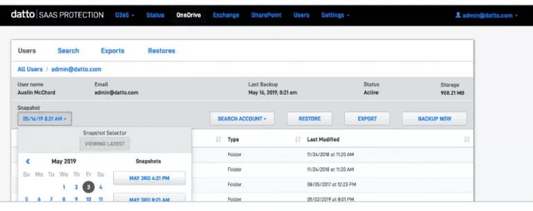 Rest easy with SaaS Protection’s automatic daily Office 365 backups for Exchange Online, OneDrive, SharePoint Online, and Microsoft Teams.